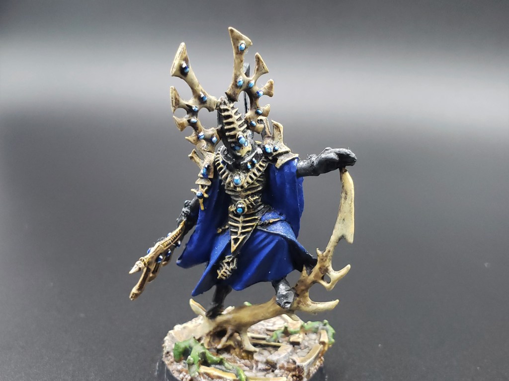 The Bonesinger had a really neat but brief time in the sun in 8th edition, being one of the only Eldar units that can repair or heal another. Very happy with how this one turned out as a painting project, and I think it’s underrated in what a pretty design the model is.
