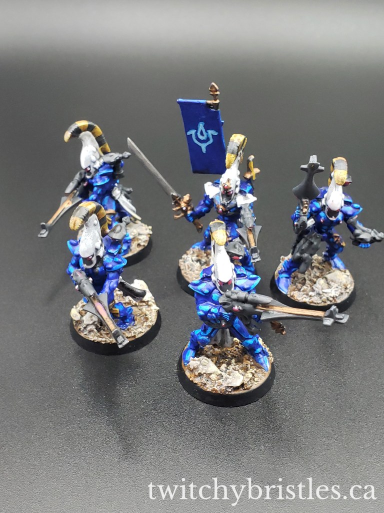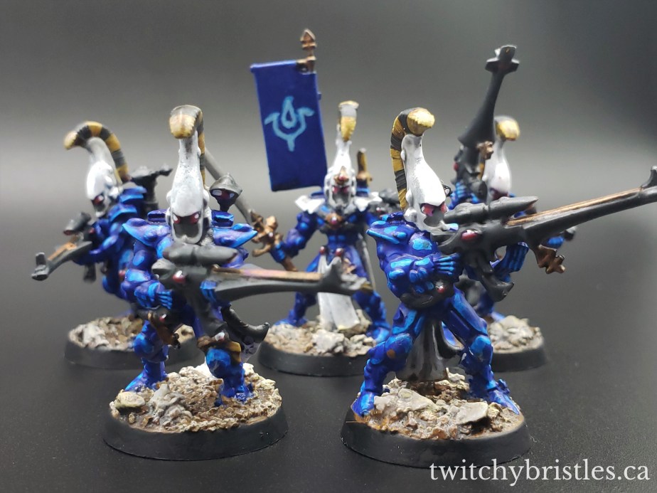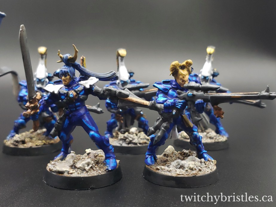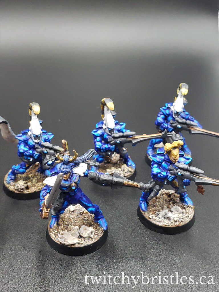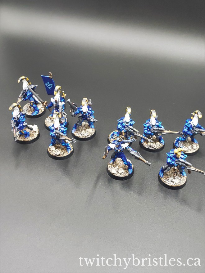 Dire Avengers were a change of pace for me! Up to this point my only Troops units for Eldar have been Guardians or Rangers, but when a friend gifted me a box of them last year I was thrilled to be able to work on them, and to add them to my regular Eldar lists.