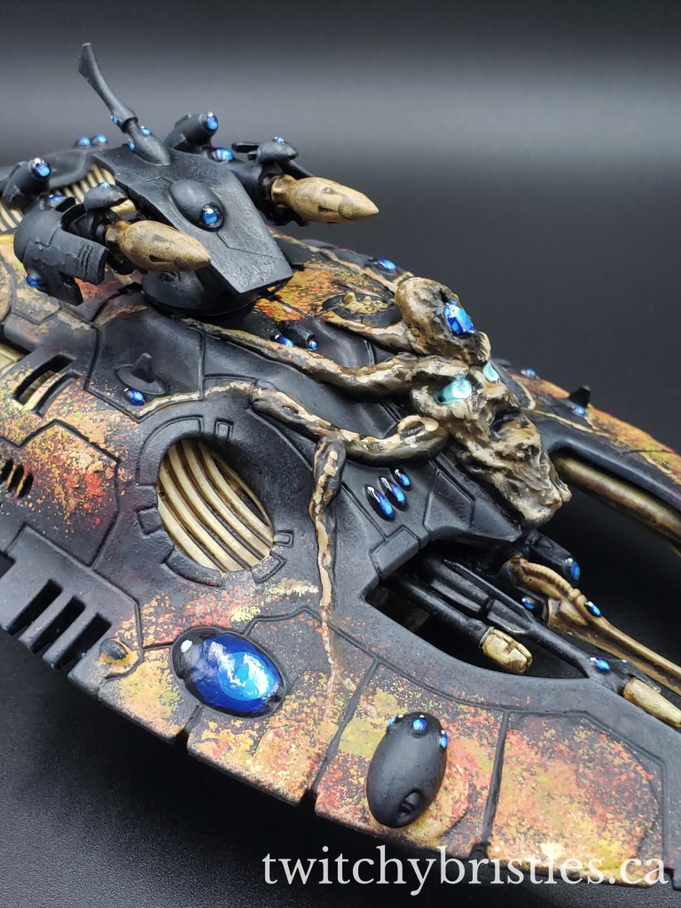 The Wave Serpent “Jorel’s Ancient” is one of the hardest and most rewarding rescues I’ve worked on to date. When I got a hold of this it was second-hand, and many of the parts had been haphazardly glued to each other in the wrong order. I took it apart, put it back together, gave it plenty of love and a few extra plastic bits, and I’m very happy with the end result.