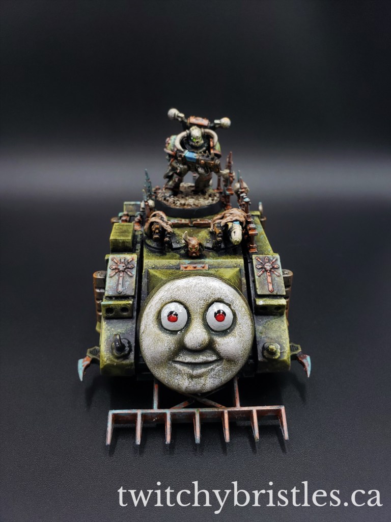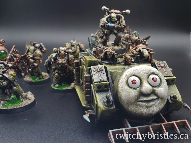 This one is a kitbash that came to me as soon as I started working on my first few Death Guard. I built my Eldar army to be very refined, serious, lore-heavy, and my best-foot-forward into the hobby, but with Death Guard I wanted to be able to give myself a little more wiggle room and have a little more fun. The result was this crime against nature. And I think this is some of the most fun with miniatures I’ve ever had.