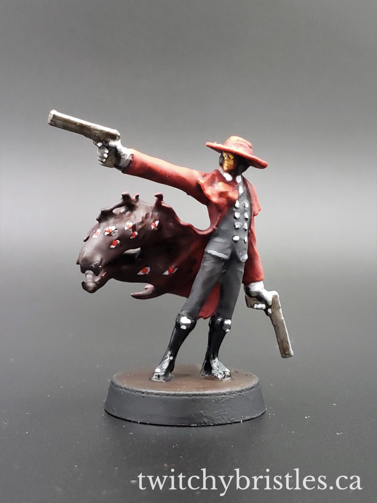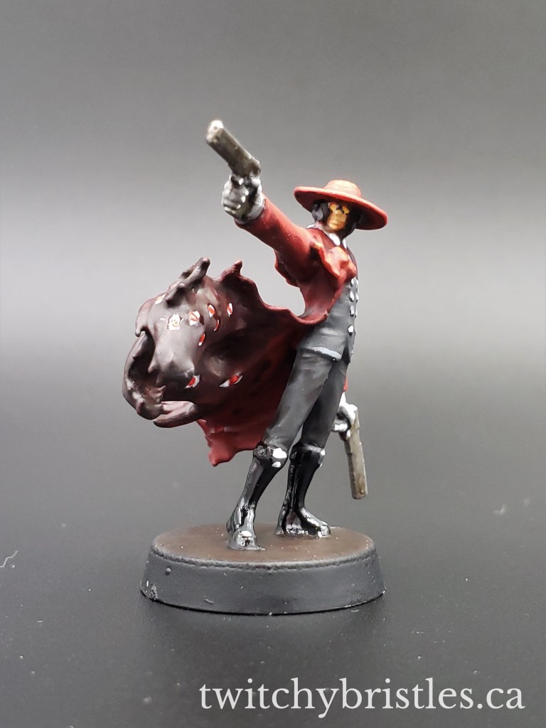 Hellsing Abridged is one of my all-time guilty pleasures on Youtube, so naturally when I saw that Artel W has a fantastic sculpt of Alucard from the series listed as “The Gunfighter,” I had to get my hands on it and try painting it up. This one turned into a sort of “color study” like my Bone Devil and Imp previously, while I tried to get myself back up to speed. I would like to thank Alucard for teaching me how to “red” again!