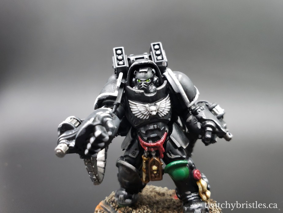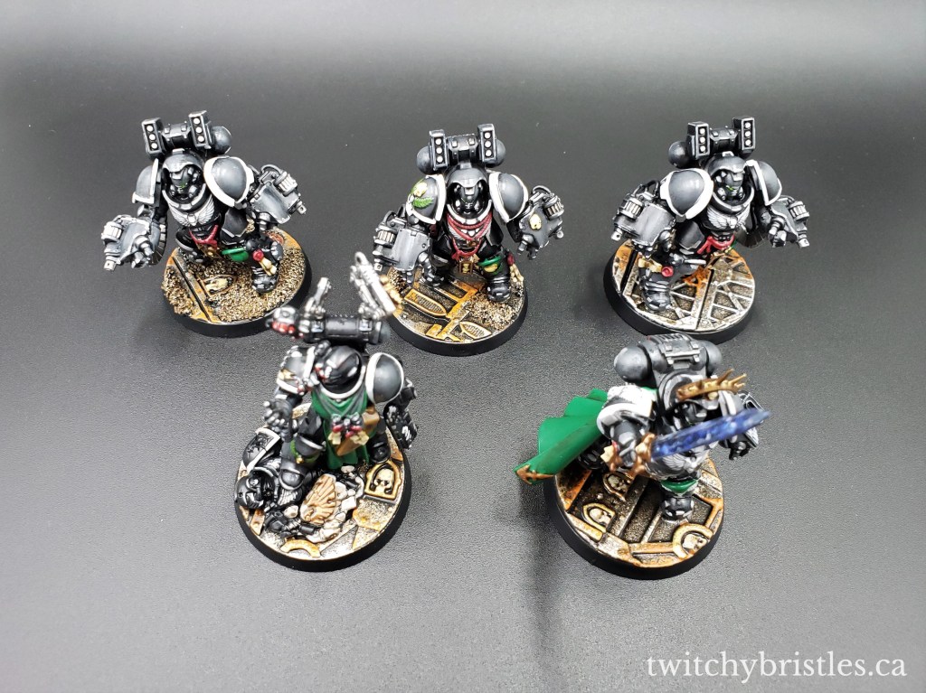 While I wouldn’t say anything went “wrong” as such, I definitely underestimated how detailed these punchy bois were. Even with having the Sector Imperialis bases done as part of my previous Death Guard batch, and doubling up some of the batch painting with Eldar reinforcements, I found that the sheer amount of detail that needed attention on each Gravis marine was more than I’d expected. It was a nice challenge though, and let me try a few new things as opposed to painting Eldar Guardians which at this point I’ve kind of boiled down to a process.