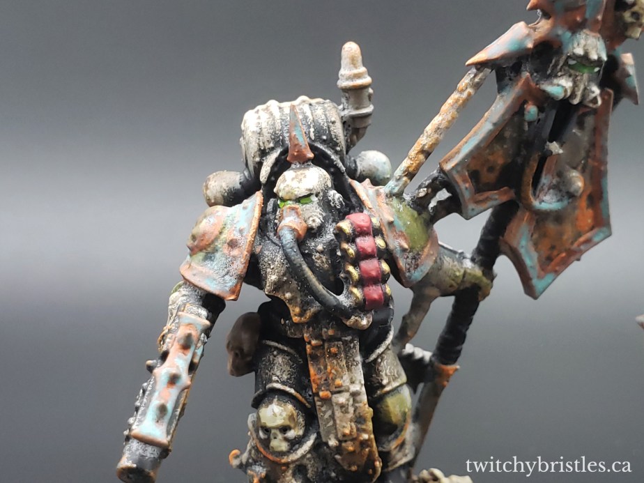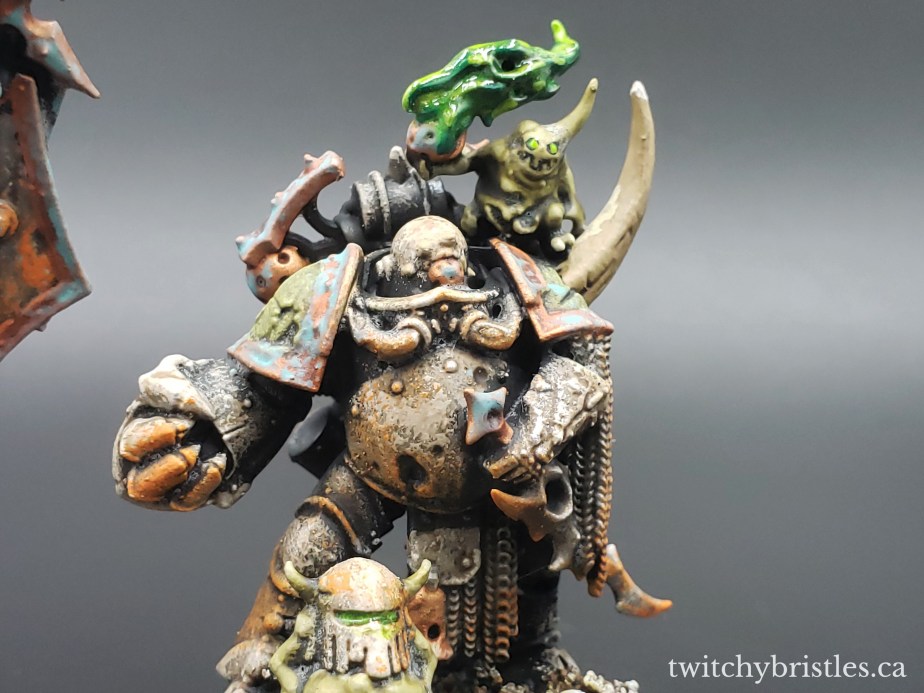 What’s the only thing better than a character with a Nurgling? A character with two Nurglings, obviously! The Plague Champion was one of the highlights of painting my most recent batch of Plague Marines, and I will admit that 99.9% of that was that I wanted to paint the Nurglings. Someday I’m going to just get a box of the little dudes and I’m not going to know what to do with myself.