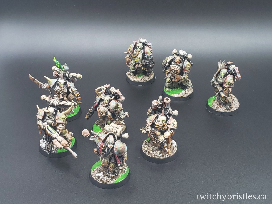 Even the Great Varnish Disaster of 2020 didn’t hold these back all that much, and I feel like they ended up being a step ahead of the ETB Plague Marines that I finished previously. With the new Death Guard codex I have a feeling I’m going to be getting a lot of mileage out of these, and I doubt this will be the last time I post a gallery of Plague Marines. Maybe I’ll pick up the Heroes box? Maybe I’ll pick up the regular, multi-pose kit? I don’t know for sure yet, but it’s super satisfying having a bunch of completely distinct Plague Marines done.