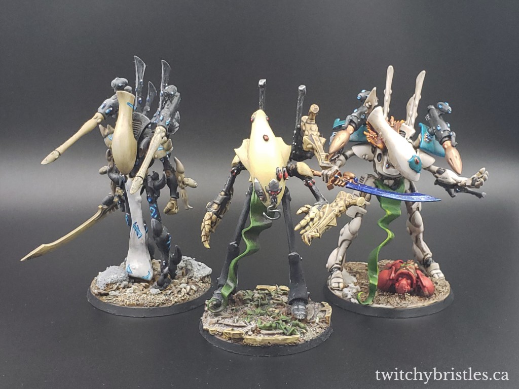 Pictured: My Wraithlord attempts over the last several years: “Haunter,” “Big Sister,” and “Ishi’s Grace.”