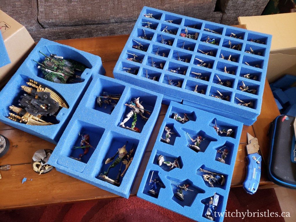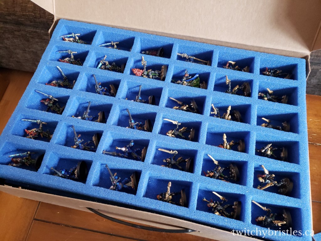 One of the things that’s placed a bit of a hindrance on my painting motivation and time recently is the pressure of what’s become “gig economy” work and the instability that comes along with that. While I have my paint tray started and have some neat stuff on the way, it’s also been difficult to motivate myself because my living situation could change by the end of the year, and because I didn’t have a plan for transporting my miniatures in the event that I had to move (locally or abroad alike). I’m very happy with the two armies that I’ve built up but I dreaded adding anything new to them without having a plan to transport what I had, let alone anything else I might add in the meantime.