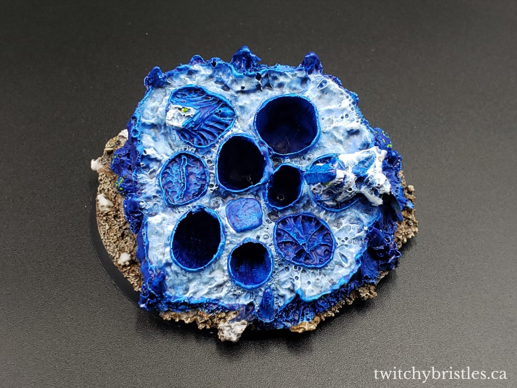 In the end, despite issues with the build I was very happy with how this came together, once mounted on an 80mm base and given some extra terrain bits and bobs along the edges. It’s definitely not my fanciest or most polished build but I’m pretty happy all things considered with how it came together, and I’m glad that XenonMage is finally going to get to add some Tyranid flavor to our games, and other games she plays down the road. I’m still hoping to finish my Deathworld Forest table, but I’m also going to keep an eye out from here for any handy third-party Tyranid terrain pieces that we might be able to use since the GW stuff is so scarce.