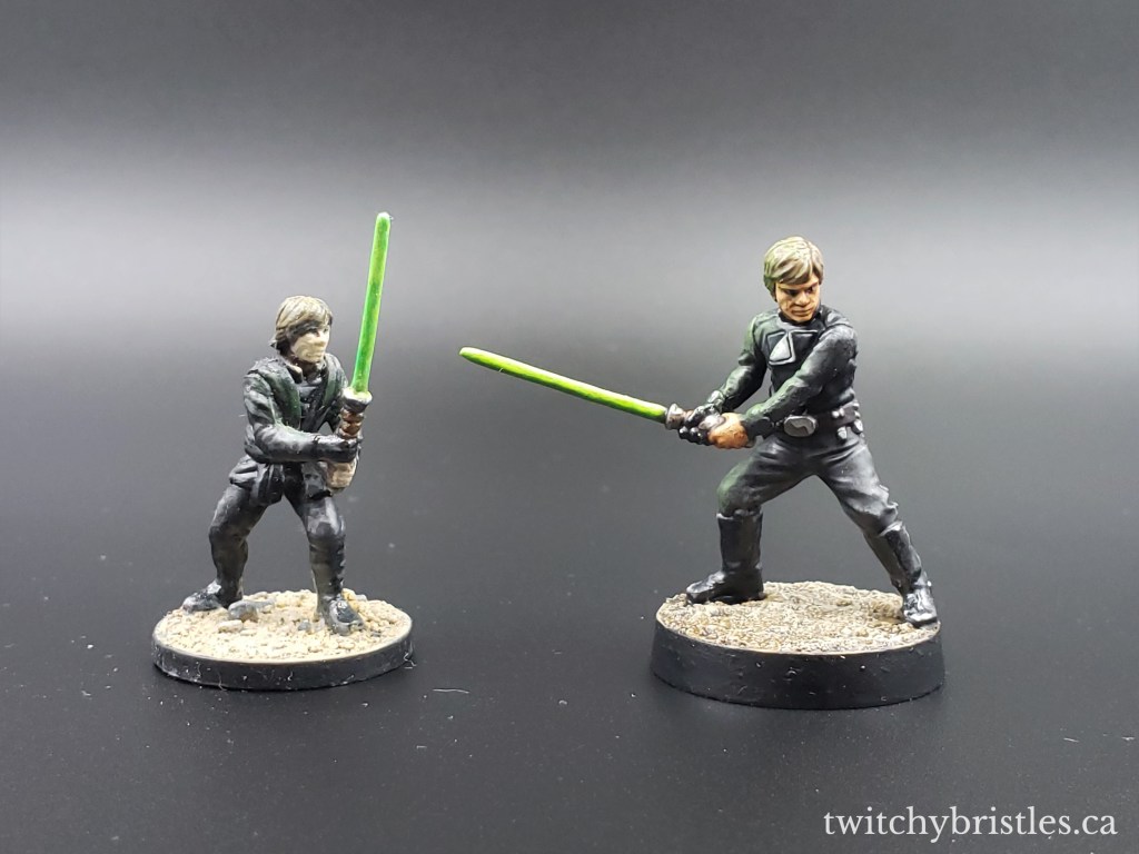 I think in the end this was a huge success, especially when compared to the model of Luke that I put together last time. It’s always one of the best feelings in the world when I can put miniatures that I’ve done a couple years apart side by side, and see that yes, I have improved. And…I think that’s something that I need to do more often when I’m trying to “grade” or assess my own painting. I don’t think I’ll ever be on a pro level, and I don’t really think I have to. So…comparing myself with pro-painted work and beating myself up is no good. The important thing is just being able to practice, improve, and know that at the end of the day I’ve gotten better than when I started out.
