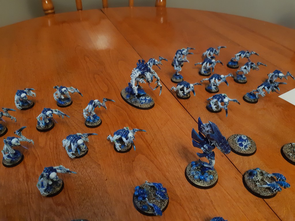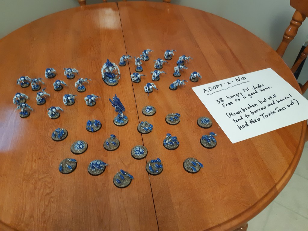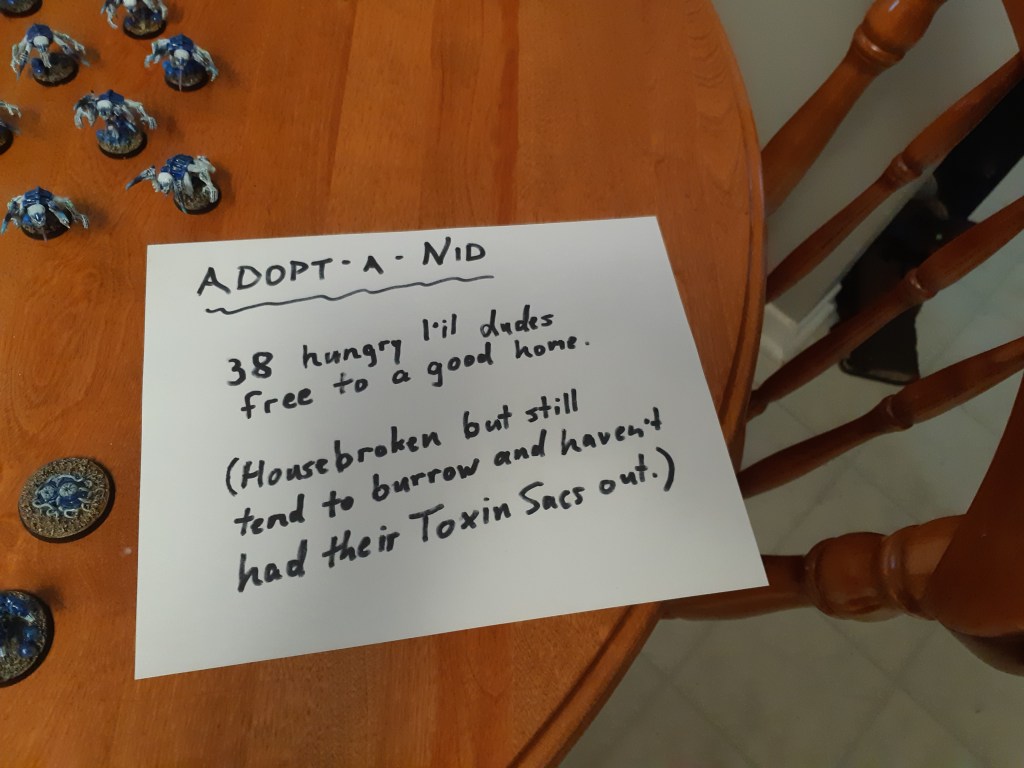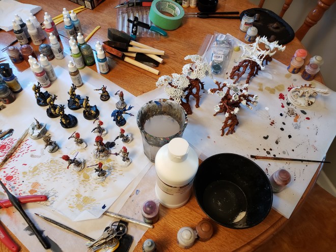 And…really, it only got better from there, and I only got more invested in the hobby, especially after making a couple friends locally who were into the game, and after I helped XenonMage get started by building her a “starter” batch of Tyranids. I took on Death Guard as a second army because Nurgle is fun, and because I like their interactions with the Eldar in the lore, and snippets of lore like the Eldar goddess Isha still being alive and imprisoned by Nurgle, with speculation that they’re actually quite fond of each other. I digress however. I started going as a semi-regular to my local store and trying to pick up kits there whenever I was able, or just a bunch of new paints or terrain bits and bobs when money was tight. And I wasn’t just buying Games Workshop kits for myself, though I certainly did more than my fair share of that, I was buying them as gifts to spring on the friends that I’d made.