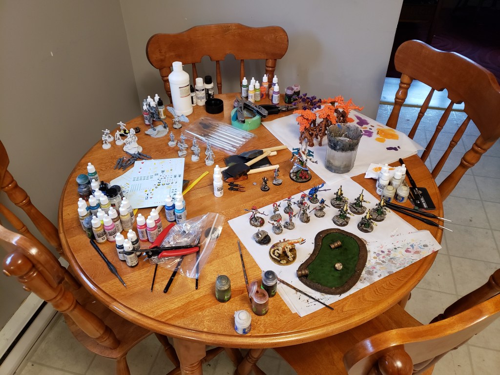 On the bench at the moment – lots of my Warhammer 40K backlog, some Star Wars: Legion, some kitbashes and some other cool independent and third-party stuff. Can you tell I’ve been switching to Vallejo?