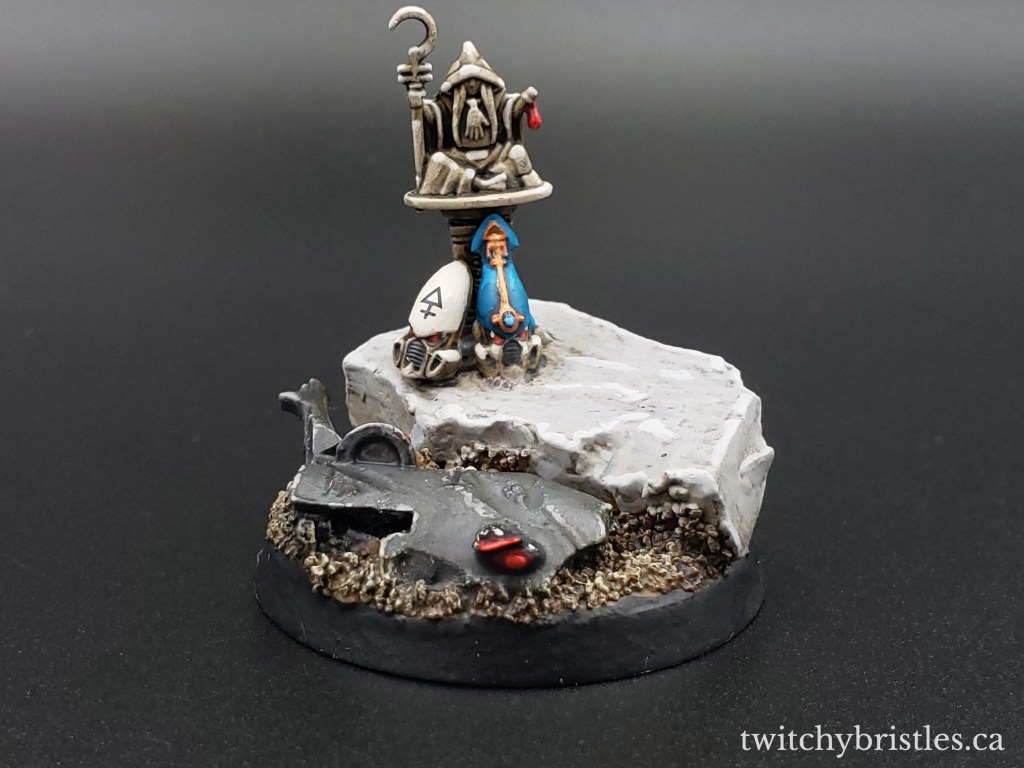 Next week, going to post the last gallery lot from this batch, and update my bingo card. I have a bad feeling about the number of “10+ squad” squares I still have left, and that “Lord of War” square, too. But after that, in addition to the tiny Banshee shrine, I’m hoping to add something pretty fun to my Eldar scenery, and hopefully finally make some progress on that Deathworld table I’ve talked about for ages. More on that to come.