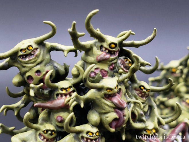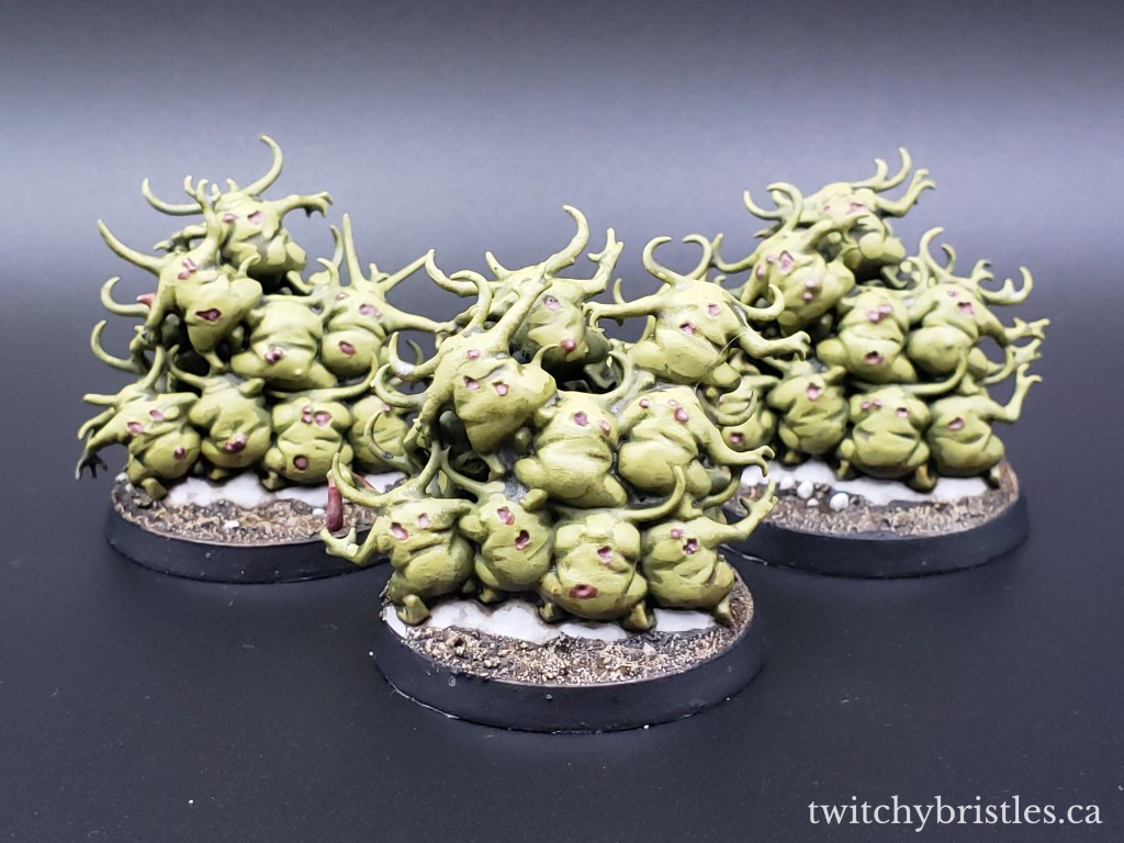 In retrospect, as salty as I’ve been over the last few days, it was probably the best way this could have played out – getting sick at Christmas meant I had a nice long holiday weekend to ride this all out. But now that I’m mostly through that tunnel, and have taken my lumps, so to speak, I’m going to be doubling down on disease and general disgusting resilience as a theme with uploads over the next little while. And starting that off is this staple of all things Nurgle, the Nurglings themselves.