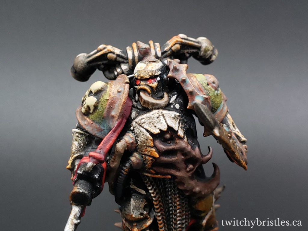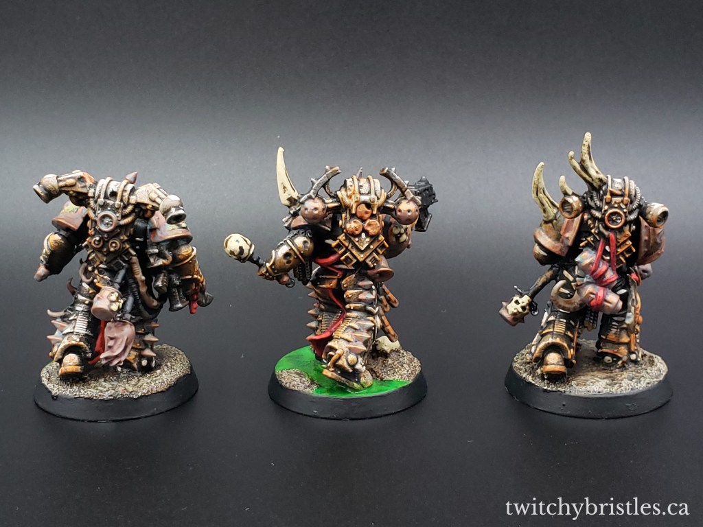 This is a project that was on my wish list for a while. I still haven’t gotten around to the multi-part Plague Marines, but these three monopose ones stood out to me as having a lot of character, especially the one with the melta gun. I was lucky enough to get a set of them second-hand, and set to work on them almost immediately. They ended up being a really satisfying speedpaint project, and if anything I think they help to show a steady, upwards curve on how my Death Guard have turned out over the last few years.