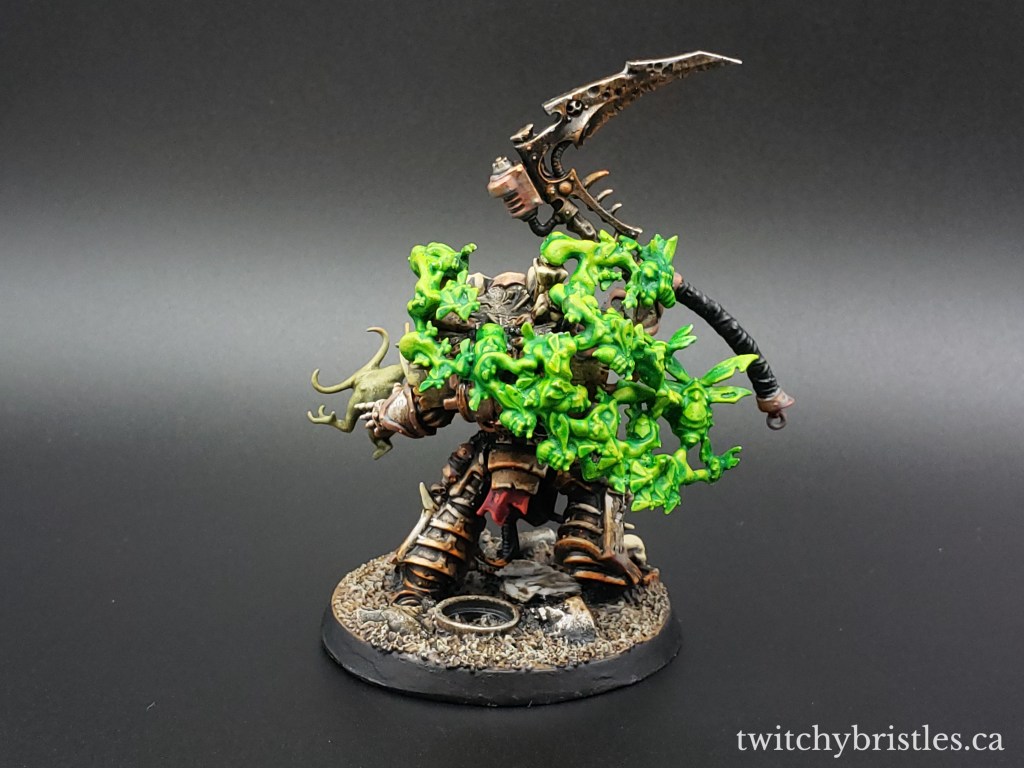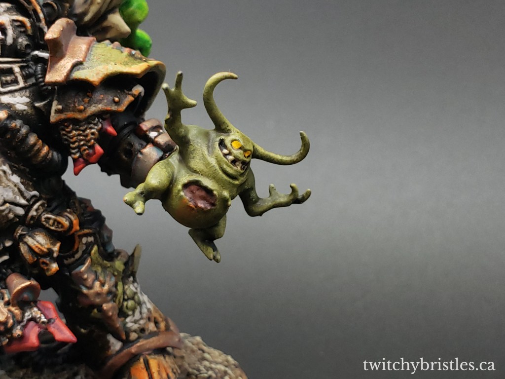 Thanks muchly! Compared to my earlier Lords of Contagion I’m thrilled with how this one turned out, and it’s gonna be a staple of my tabletop Death Guard – whether I run it as Typhus or not, lol. And thanks, the Nurgling is my favorite part of this.