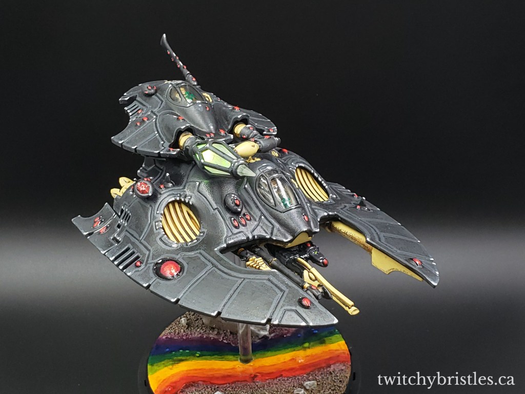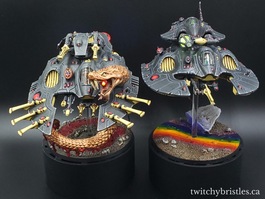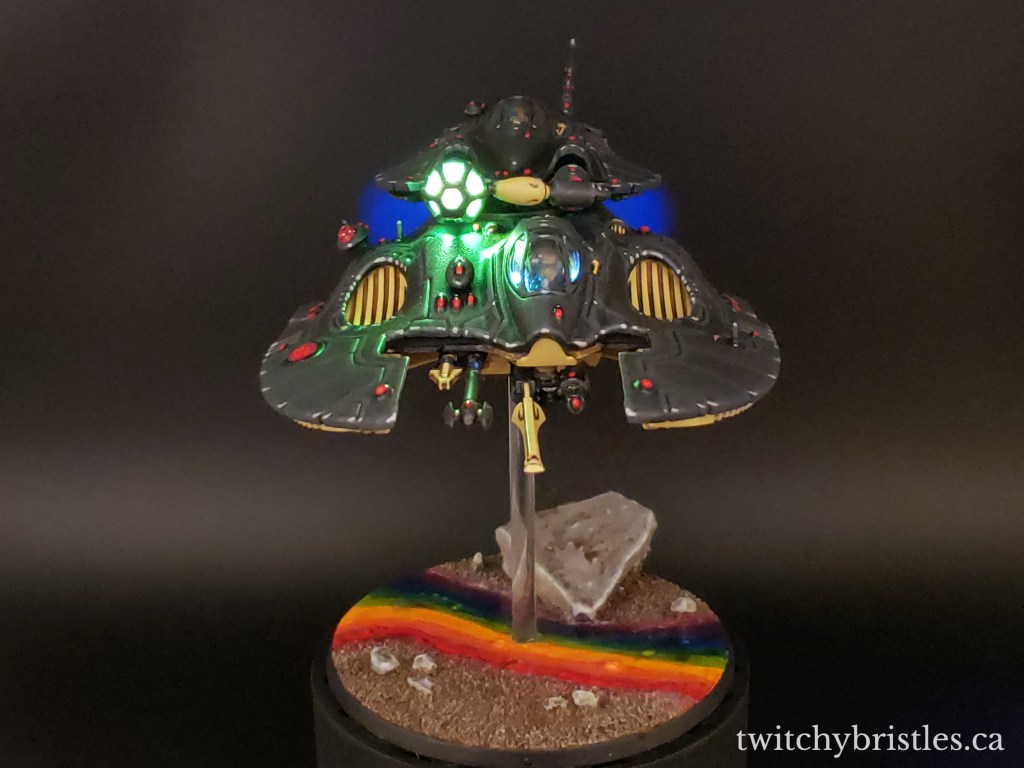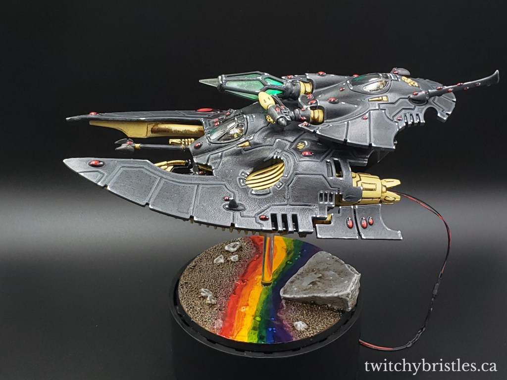 If you’ve been following my blog for a while you might remember that last year there was an unfortunate post incident that resulted in my Fire Prism and my old metal Wraithlord being mothballed and sitting in the bits drawer. It’s still going to be a while before Big Sister is back on her feet, I think, but going into my podcast’s last 9th edition game with KinpatsuSamurai I decided that just out of vanity I wanted to have my Fire Prism back on the tabletop, and wanted to let the rainbow cannon do its thing. I’ll be posting on that in the next day or two but I wanted to share how the rebuild on this turned out because I’m super happy with it.
