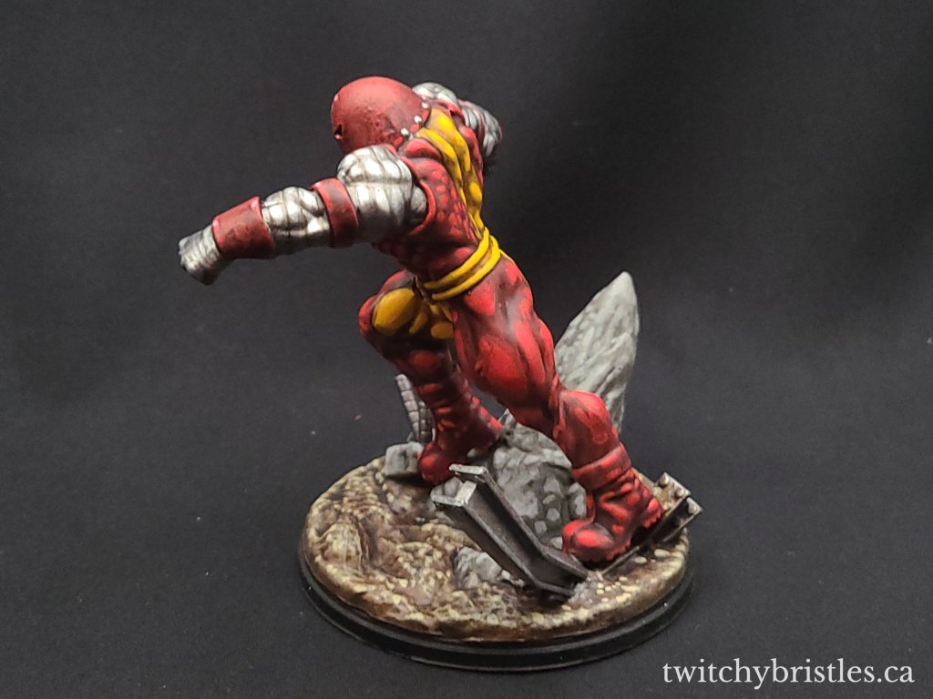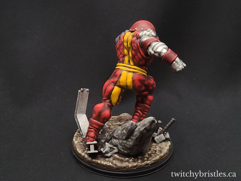 Never knew Colossus ended up with Juggernaut’s powers so that was interesting information, the model looks great as well. I know what you mean about reds as my go to colour has changed formula, and doesn’t work the same anymore, currently using GW Khorne red, Mephiston red, and highlighted with evil suns scarlet, which I’m happy with, if I want a darker base to start I’ve been using Flesh tearers red contast over a base of Khorne red.