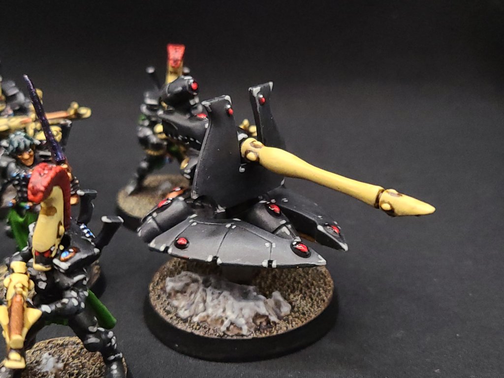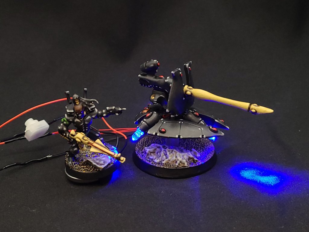 Last, but not least, of course I had to add LEDs. between my Wave Serpent, my Wraithlord, and my Guardian squad, now, I’m ready to dazzle my opponents even if it means I’ll never technically be able to set foot in a GW-sanctioned event. I also found a neat way to conceal the battery casings, at least a little, on the coin cell holders – I added magnets to a Guardian and a Spiritseer and now they can just snap on to the battery housing and cover it up.