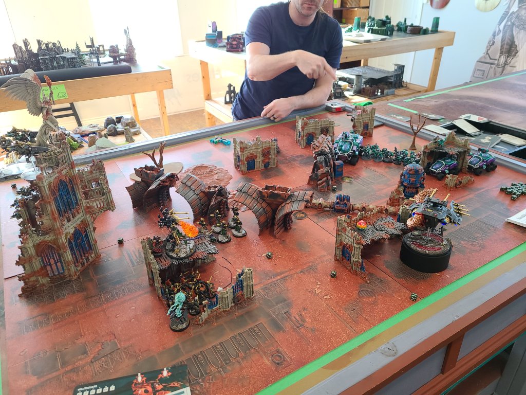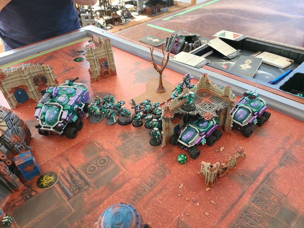 I played a couple of games at Noble Miniatures with a friend from work and it was a blast. Guy is a local legend, his Tyranids are the stuff of nightmares, and everything he brings to the table is Tyranids. Like, we’re talking Genestealer Cult Leagues of Votann, and Imperial Knights, all Tyranidified. Given my long history of getting thrashed by XenonMage, I thought I just might have enough experience to pull off a win or stand my ground decently against the swarm – boy, was I ever in for a shock!