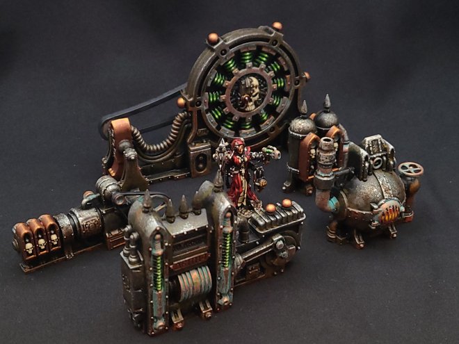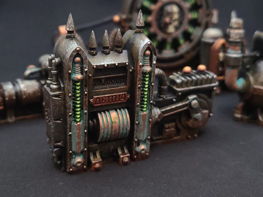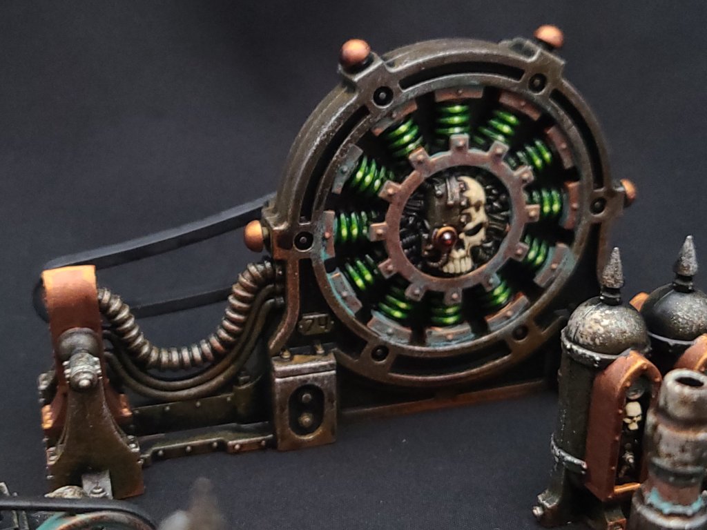 Each of the little pieces in the Kill Team Salvation box are very unique – there’s a little furnace, a couple generators, and this big skull-plasma thing that I feel like was the centerpiece of the set. As excited as I was for the Scouts and the Striking Scorpions, it was admittedly the first thing I had to build and paint just because of how cool I thought it looked. Most of this ended up being a speedpaint because I wanted to get this table-ready as quick as possible, but I still tried to add little glowy details and some fun flavor stuff. It was fun to try and think about what the purpose of each of these machines might be and inventing my own lore for them as I went about painting.