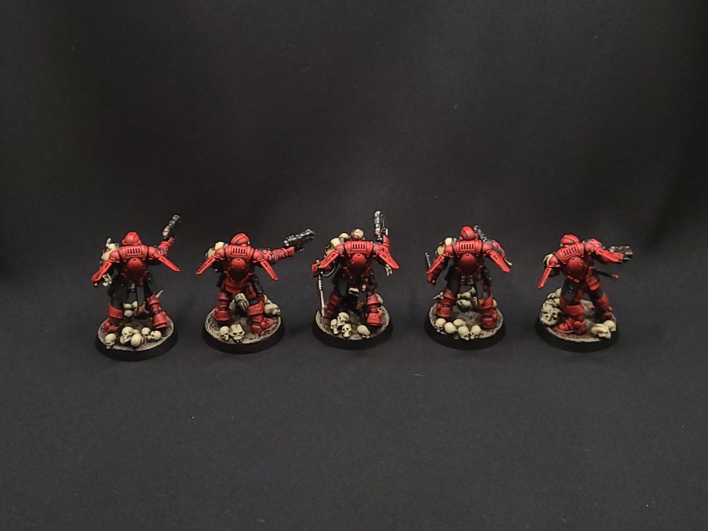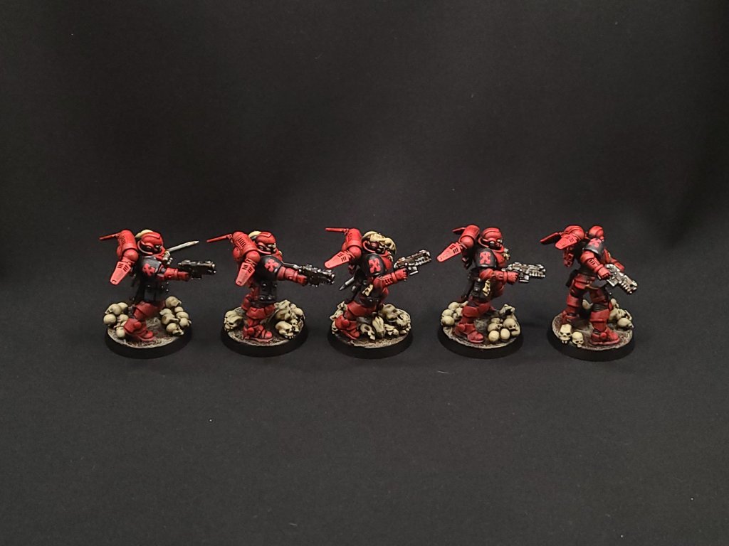 God, this feels great. I have wanted to make this particular Reiver squad as a Kill Team for actual years and I feel like I stuck the landing. I’ve also learned that Posca markers are magical, and they’ve changed the way that I’m going to do freehanding fine details on a lot of future models. Credit for XenonMage for giving me the idea to play with those. These were mostly a rescue project I made out of some Reivers I got second hand, but I also wanted to have a little bit of fun with the excessive number of skulls in the Citadel Skulls box and make them look a little more imposing.