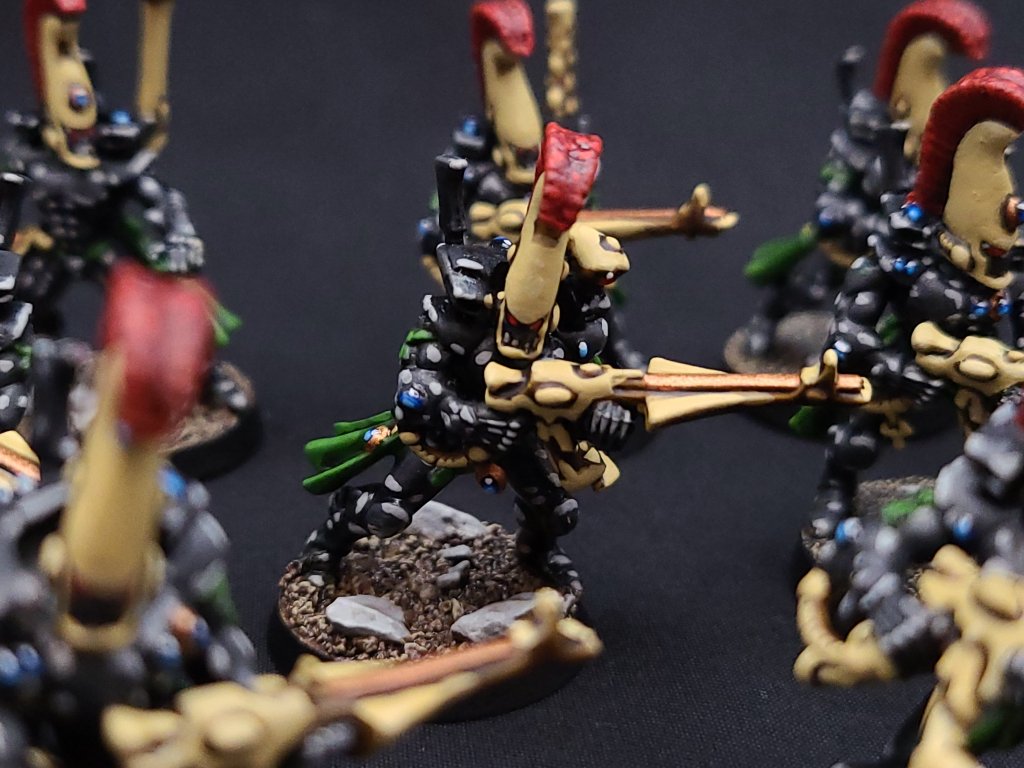 Unsurprisingly, in keeping with my Dawn of War and Unification-specific fixation, I went with these being a squad of Guardians-turned-Dire Avengers, in part because I like the aesthetic but also because this way I have the flexibility of being able to field them as either as long as I can distinguish them easily enough from other Guardian Defenders, Storm Guardians, Dire Avengers, or other units. This is also the first time that instead of magnetizing the weapon’s “turret” base that I’ve gone with a pressure fit approach so that it can swivel better. Time will tell if I made the right call on that or not!