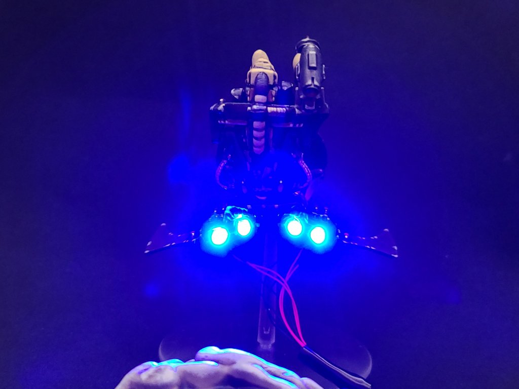 Of course, I never make anything easy for myself, and so of course I ended up adding LEDs! Vypers are described as being somewhere between conventional jetbikes and grav tanks, and because I LED-ify all of my grav tanks I took that as kind of a personal challenge. As always, LEDs were bought from Evan Designs and I can’t speak highly enough to their quality from a modelling perspective. The Vyper also gave me a chance to pursue something I’ve wanted to do for a while – building battery covers that would keep the switches and batteries for my LED models a little more out of sight.