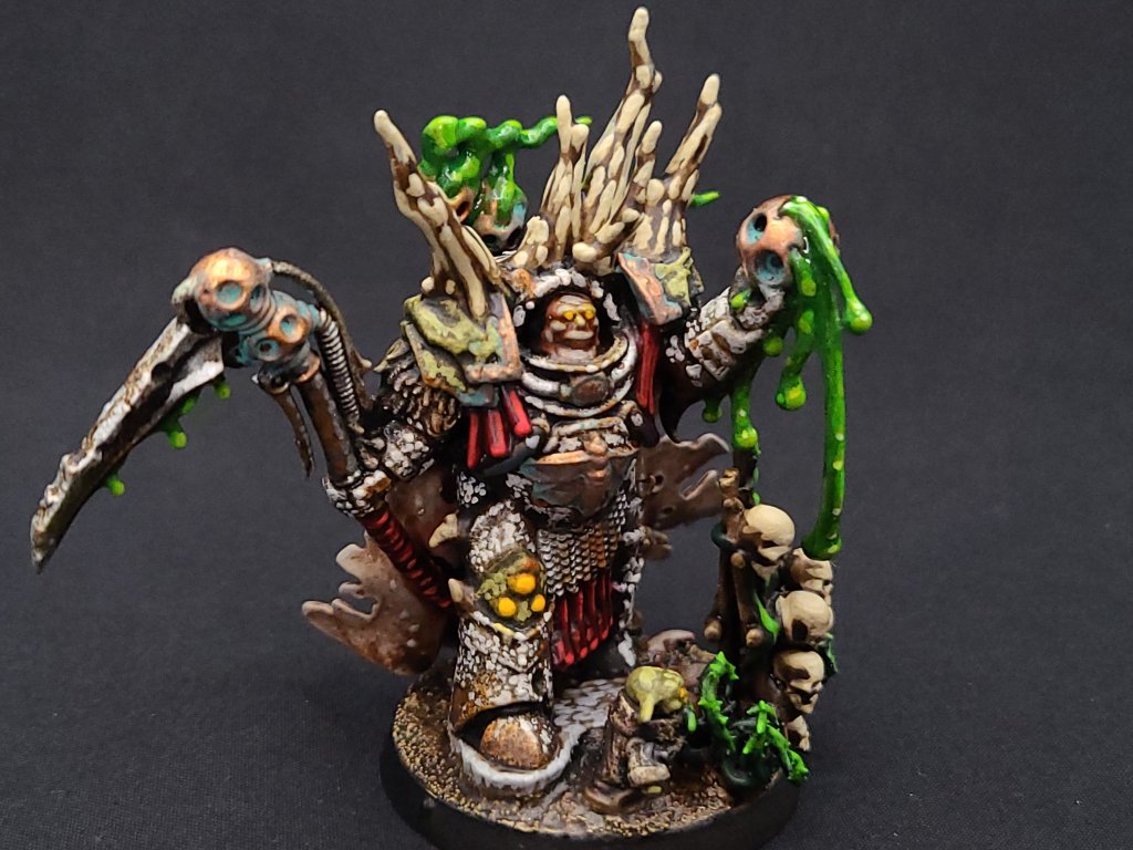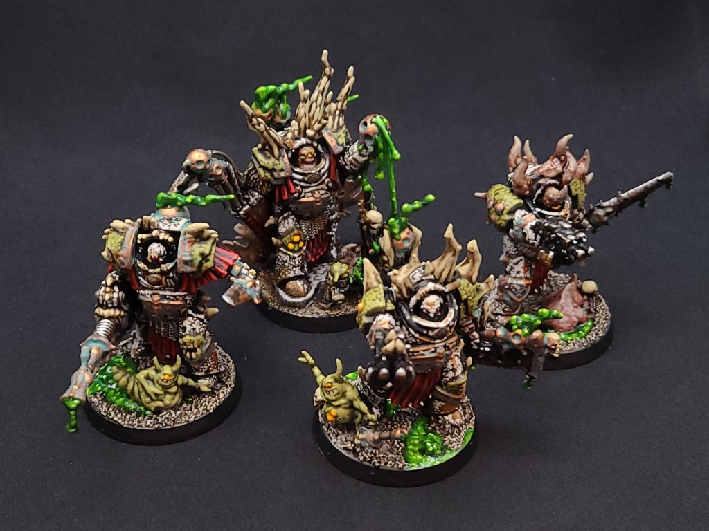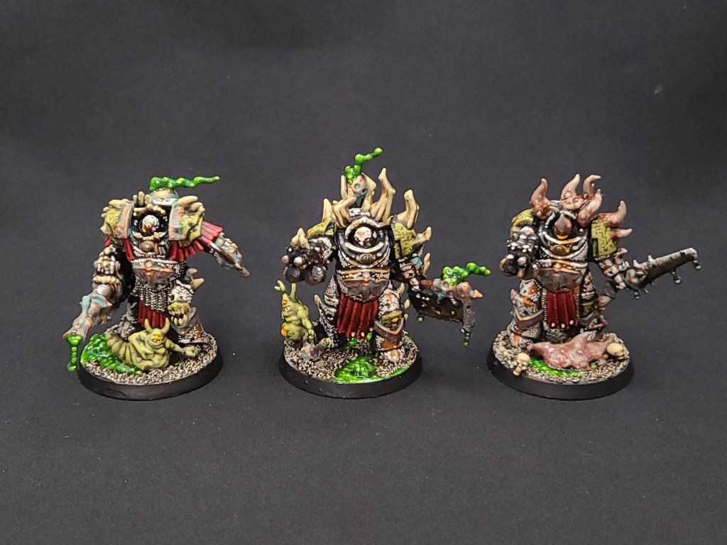 Oh, man, this one feels good to share. Years ago when I started my Death Guard army I picked up the Lord Felthius and the Tainted Cohort set, and while I did the best I could with them for the time and where my relative painting ability was, for a long time they ended up benched either because of the changing 9th edition unit composition and the Tainted Cohort no longer being fieldable stand-alone, or because they just visually really fell behind a lot of my more recent work. With the two small Plague Marine batches I did recently, I wanted to get over the last big hurdle in my Death Guard pile of shame and give these a new lease on life.