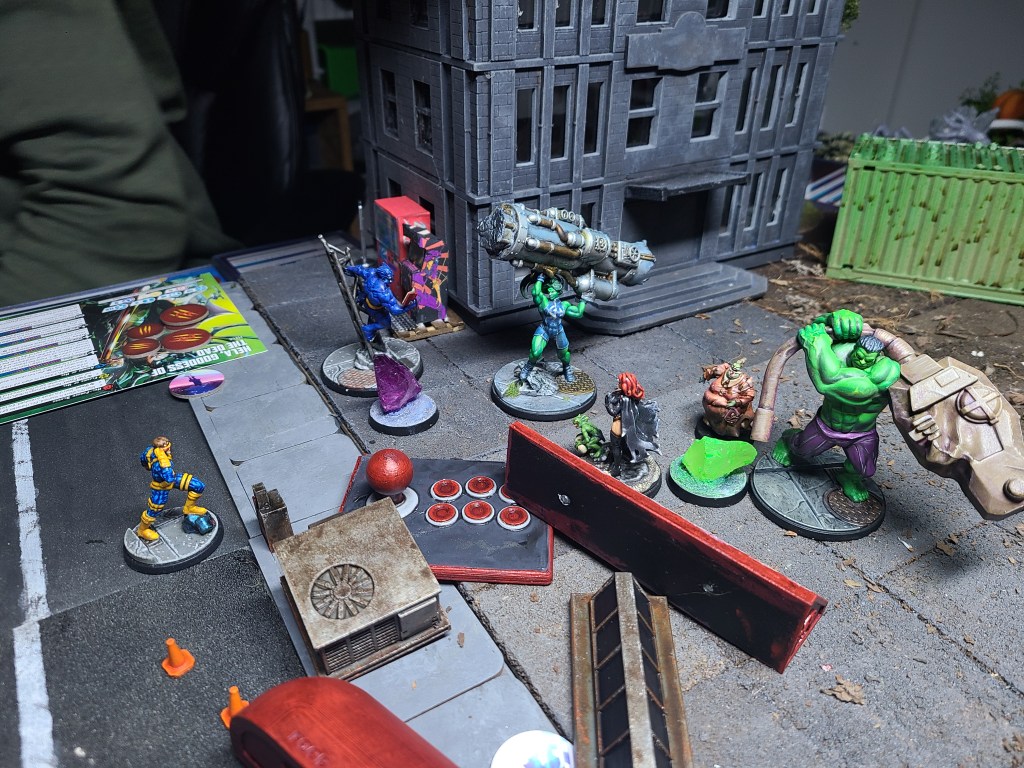 Even before it was fully painted, me and Kinpatsusamurai had the chance to break the Cardcade in during a co-op game of Marvel Crisis Protocol. We did the co-op “Hel to Pay” scenario, with Goblin Queen standing in for the titular villain character. What followed was hilarity as Hulk and She-Hulk tipped the scales of the scenario in our favor by picking up the Cardcade – the entire Cardcade – and throwing it at Goblin Queen, leaving her standing very confusedly in an enormous pile of rubble while the rest of the heroes finished scoring points and winning the game. Brilliant terrain piece, made for some top-tier shenanigans, and I’m definitely intending to play more games in the new year – and more on that to follow!
