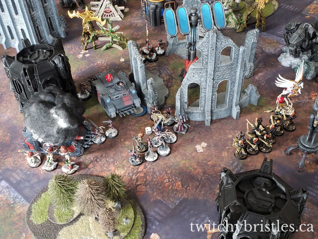 I’ve got lots of good things to say about the place, especially in this era where “third spaces,” social spaces other than the home and workplace, are increasingly challenging to find and sustain. The owner at Noble Miniatures was fantastic, the staff were fantastic, and the table setups were immaculate, by comparison to anything else available on an LGS level in the St. John’s area, even if Paradise was a bit of a drive. It was a great social space abounding with banter, where wild dice rolls were celebrated, where Eldar slander was expected but also respected, and where terrain only got licked sometimes. This was one of my favorite social places, and definitely my favorite place to get my fix of plastic crack.