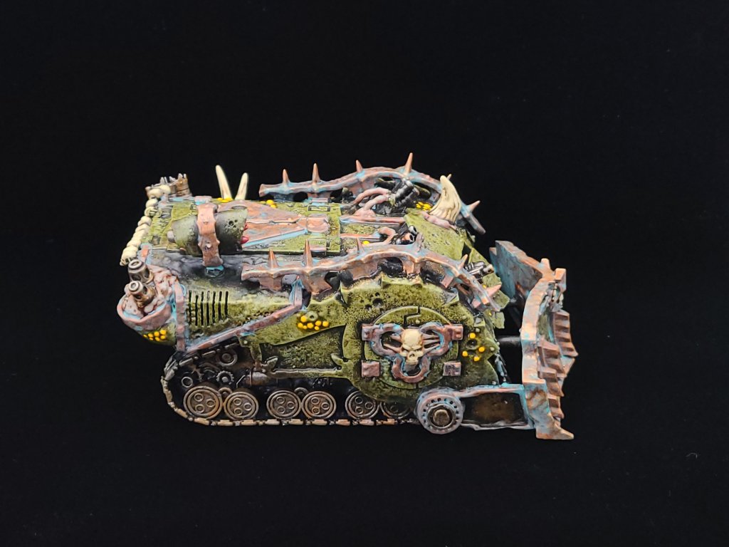 This one is a bit of a double feature of a couple of one-off projects for my long-neglected Death Guard. (There’s something about painting Nurglings again that never fails to soothe the soul.) Over the summer, Midgard Gaming in Mount Pearl had an all-day paint jam as part of their Warhammer Day event. I was lucky enough to get a 1000 pt. game of 10th edition in with an old friend, but also brought a couple models along for the ride that I wanted to try and get off of the shame pile. I’m happy with the results, and I got to enter the Tallyman into the contest, but also on completion of the vehicle piece entered it into Dave Stone’s Season of Scenery contest.